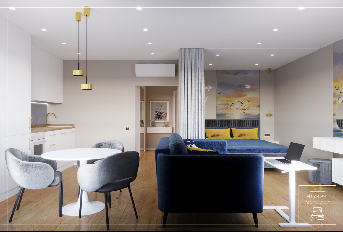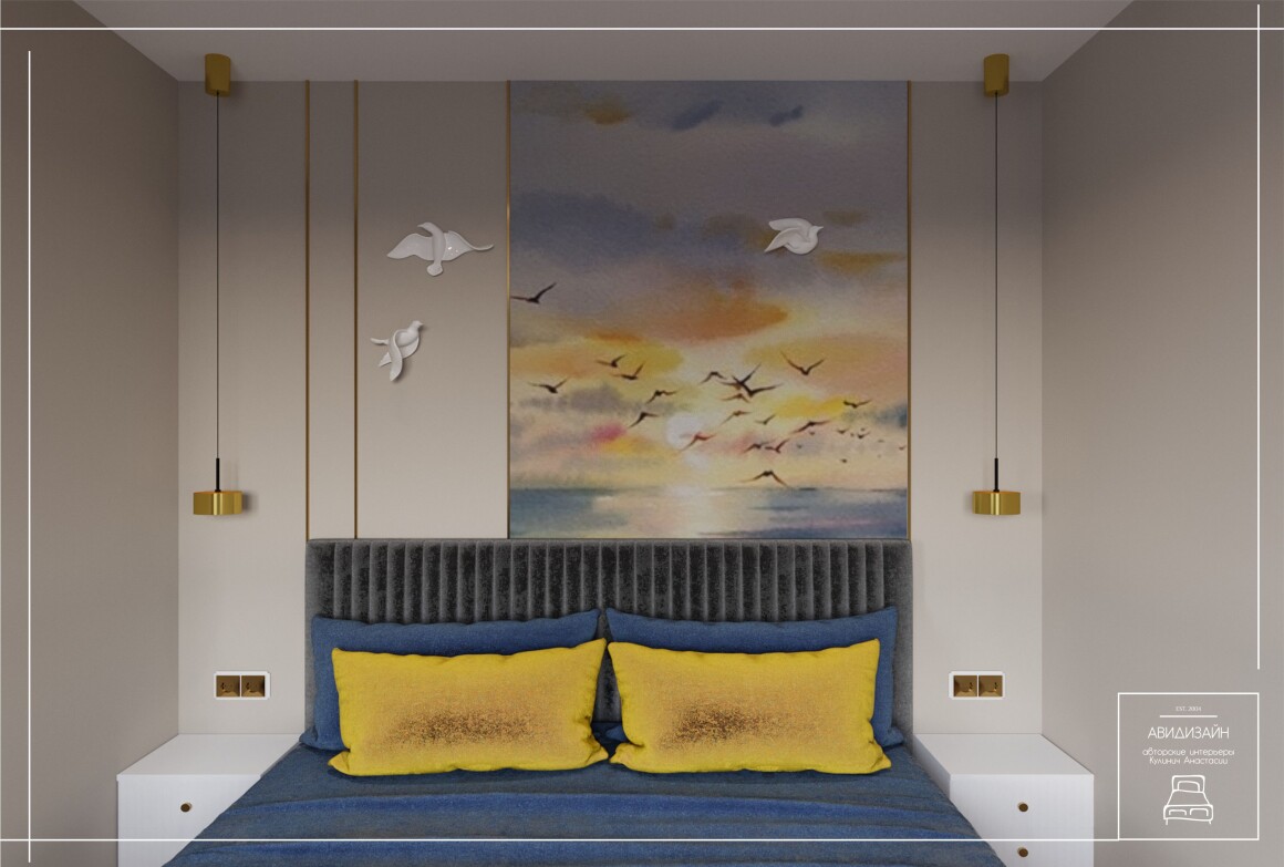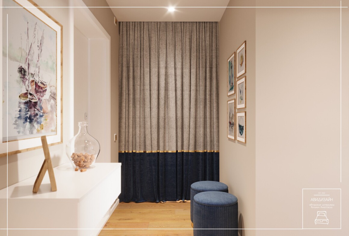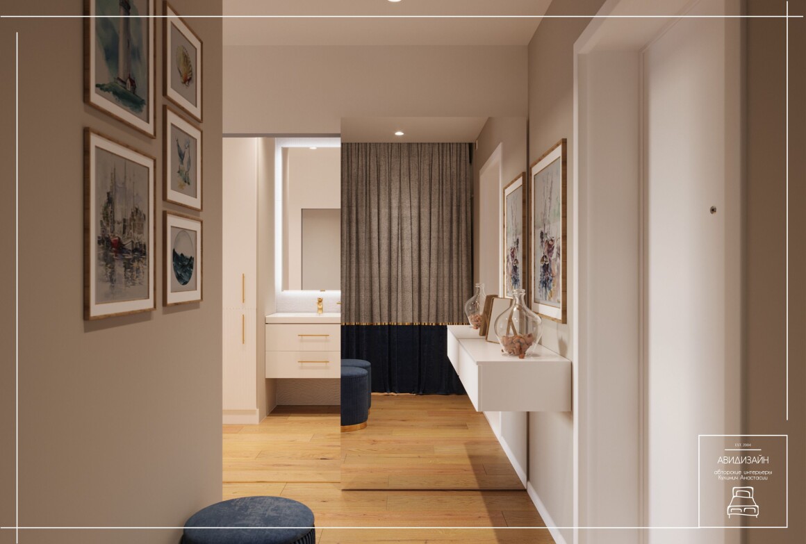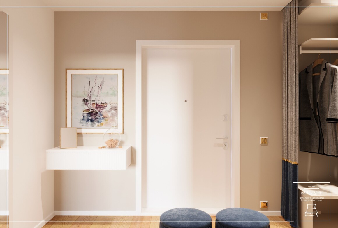 Эта квартира — не просто ремонт, а продуманный образ морского Владивостока. Панно с чайками и закатом над морем, оттенки песка и волн создают атмосферу побережья.